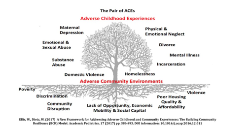 205.      See, e.g., Denise C. Herz, Joseph P. Ryan & Shay Bilchik, Challenges Facing Crossover Youth: An Examination of Juvenile-Justice Decision Making and Recidivism, 48 Fam. Ct. Rev. 305 (2010); Wendy Ellis & William Dietz, A New Framework for Addressing Adverse Childhood and Community Experiences: The Building Community Resilience Model, Acad. Pediatrics, Sept. 1, 2017, no. 7 supp., at S88. See also Wendy Ellis & William Dietz, An American Public Health Crisis – the ‘Pair of ACEs,HuffPost, https://www.huffpost.com/entry/addressing-an-american-public-health-crisis-the-pair_b_58aca9f6e4b0acc17645d844 (Feb. 24, 2017). See infra Appendix D: A Pair of ACEs [sic] Tree.